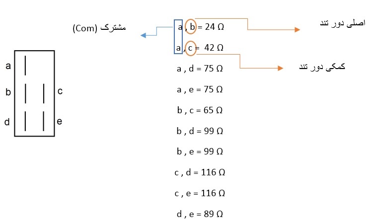 در نهایت d و e سر سیم های مربوط به دور کند می باشد (چپ و راست).